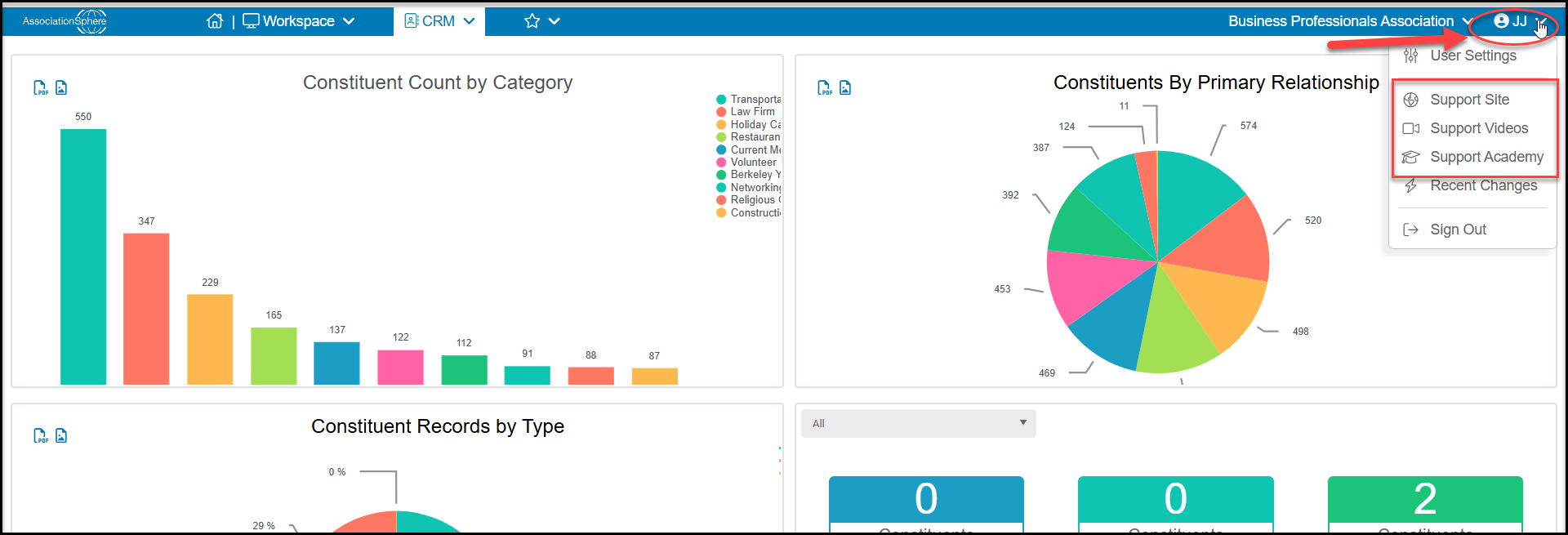 This plan also includes unlimited email support and self-directed training available through the Support Site articles and Support Videos library. Both can be accessed under the User Menu. You can download a new users guide in this article: I'm a new user, how can I learn more about AssociationSphere?