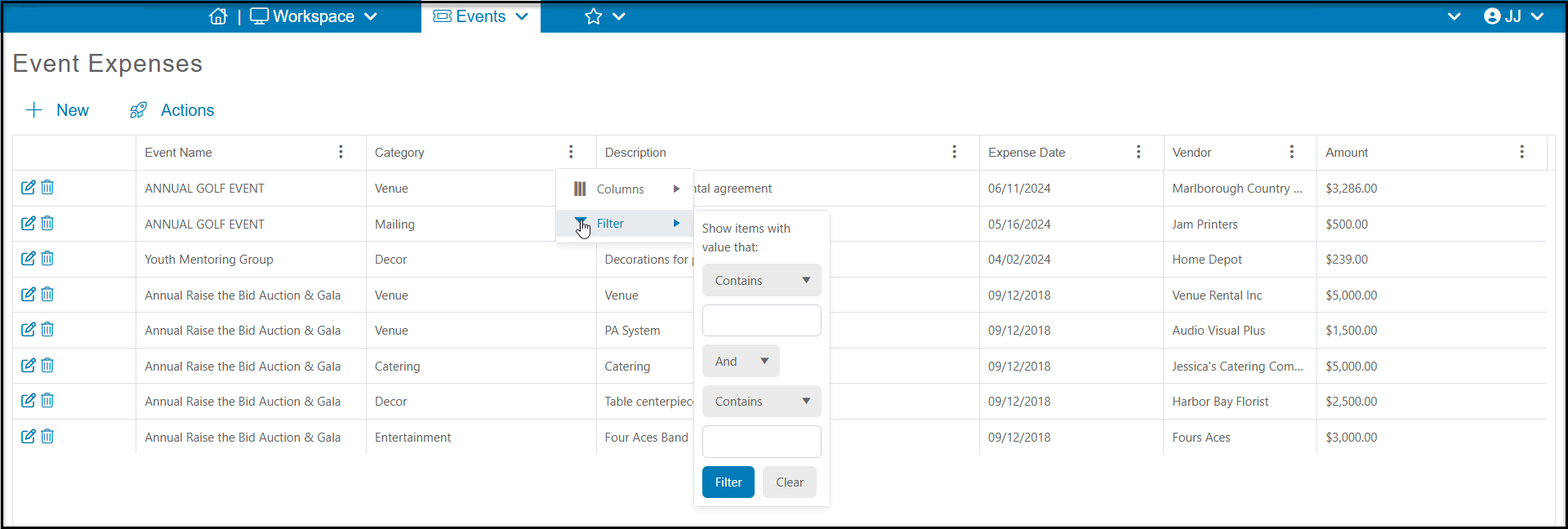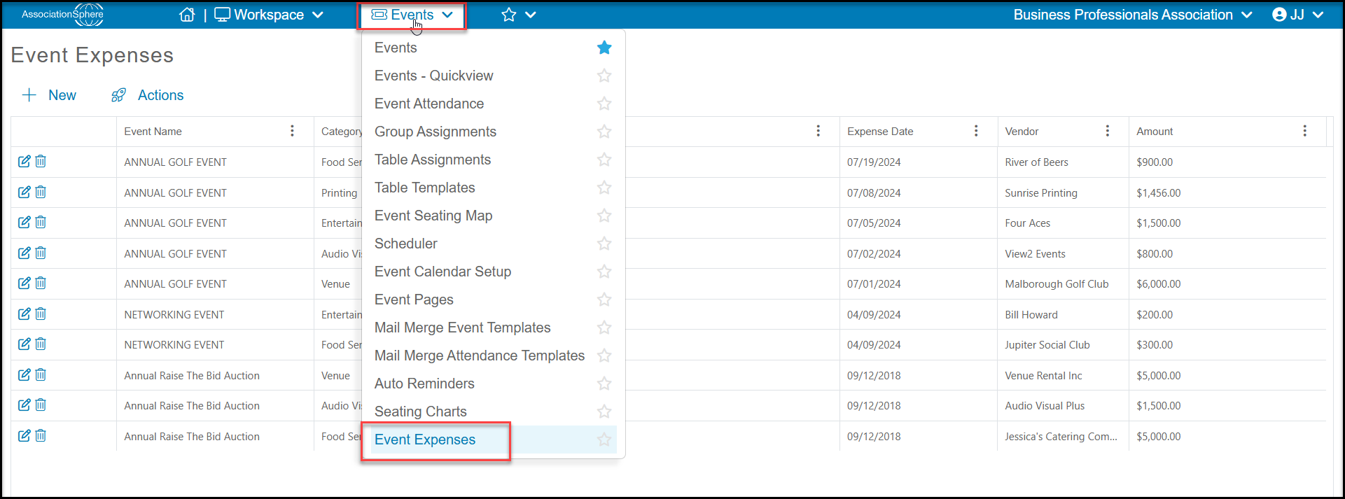 The Events module allows you track track event expenses using the Event Expenses grid.