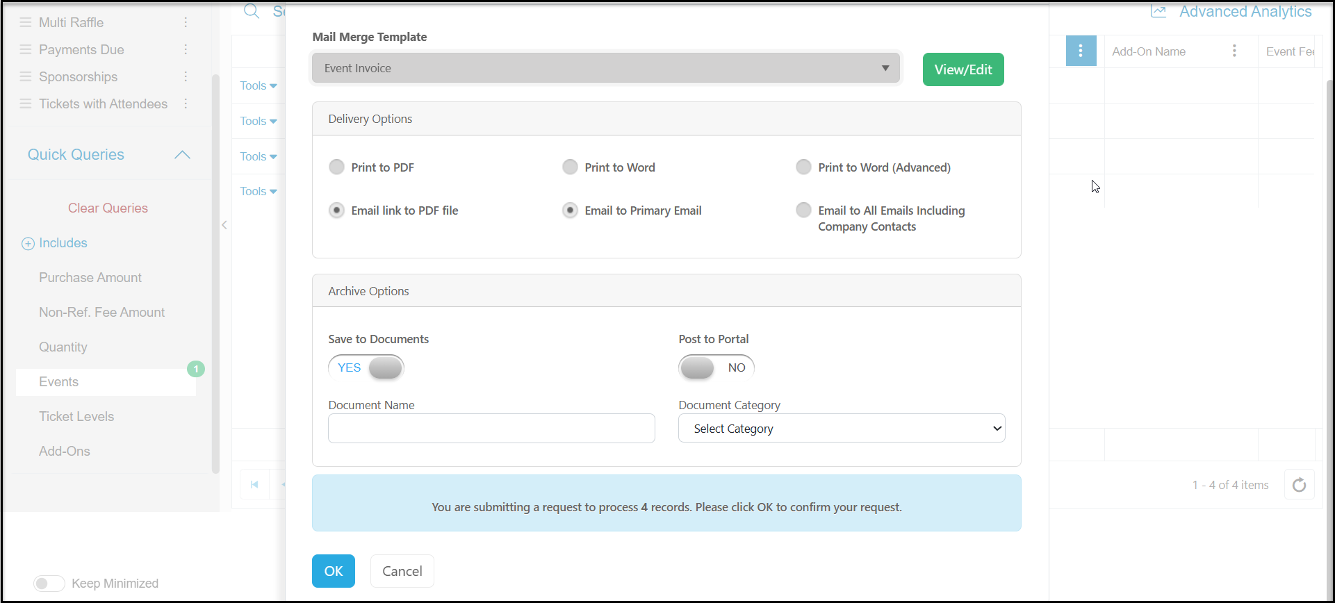 - Post to Portal is used with the Advanced Portal only and would allow the constituent to download a copy of the letter from their portal account.
