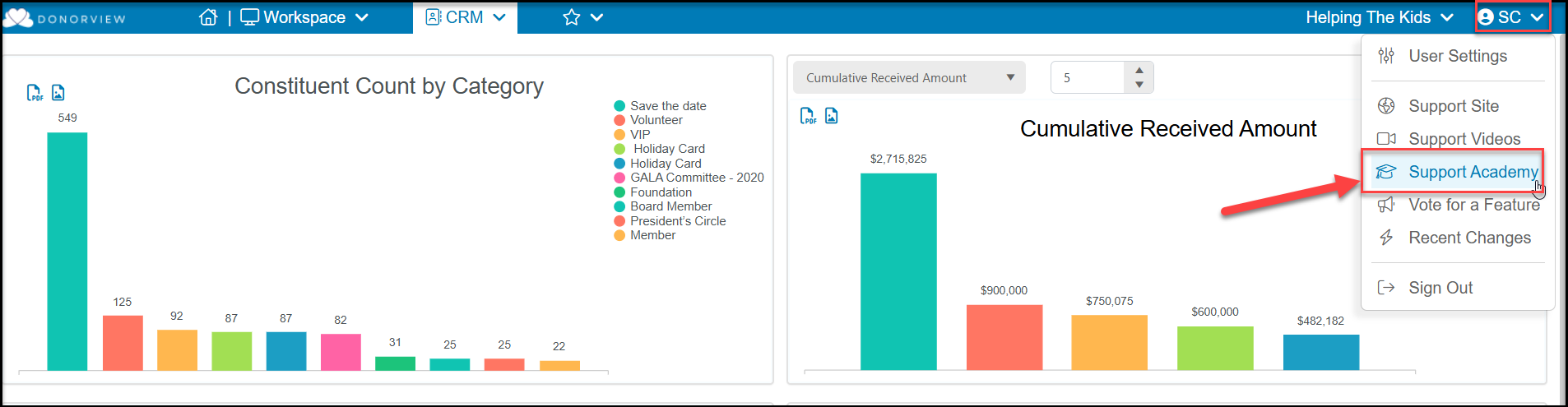 You will access the Support Academy via the link under your user initials in AssociationSphere.
