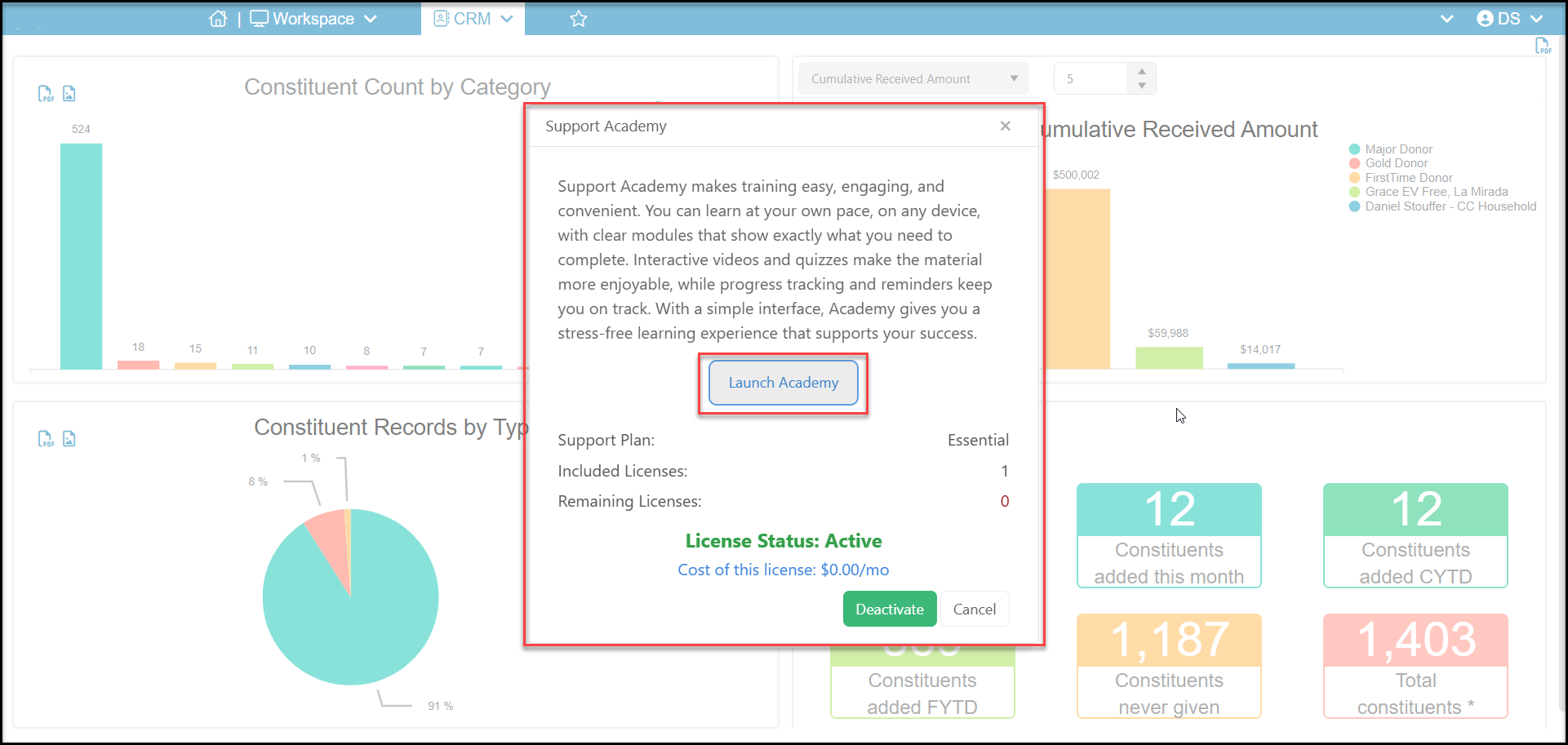 In the new window, click Launch Academy. If your user licenses has not been activated yet and you do not see the link to launch the academy, see this article "How do I sign up for the Support Academy."