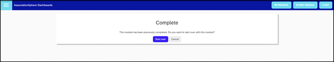 If you have completed it before, you will have the option to click on Start over to go through the material again.