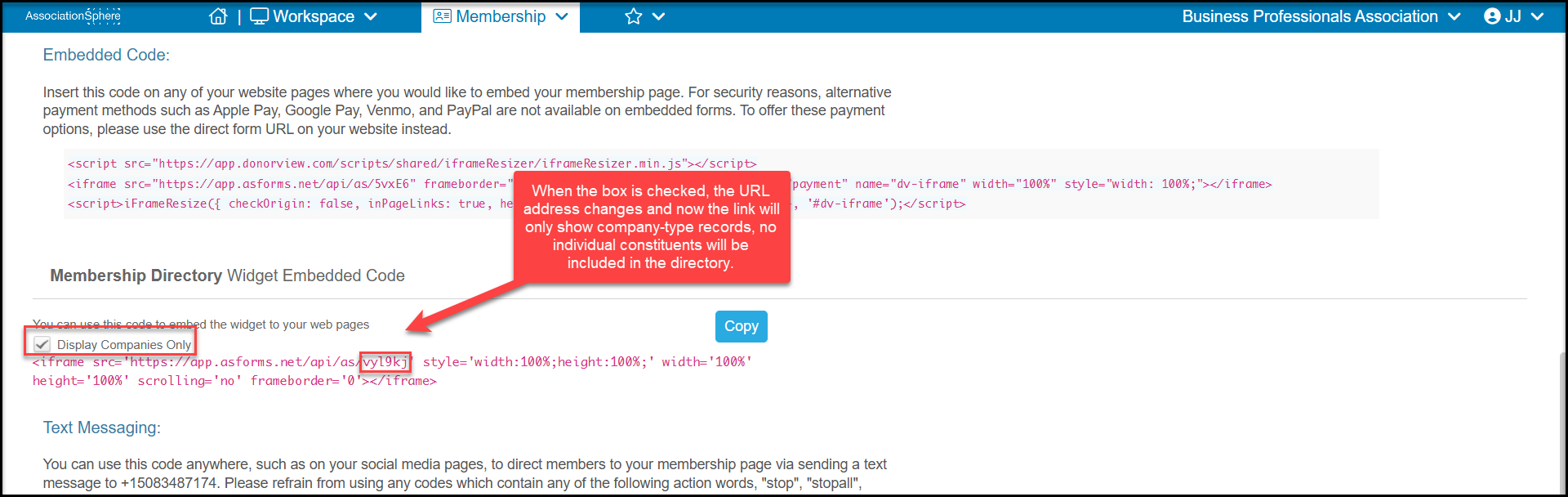 When the box Display Companies Only is checked, it will only display members who are company-type constituents. The URL changes when the box is checked.