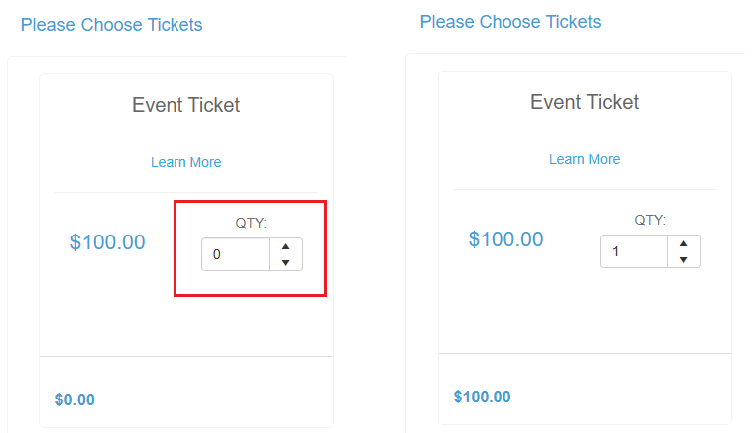 If a constituent is unable to select the ticket quantity (QTY) on the event webpage, check the following settings: