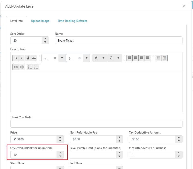2) On the Event Setup step, Levels tab, check If the individual ticket Level has Qty. Avail. set. This limits the number of ticket available for this Level.